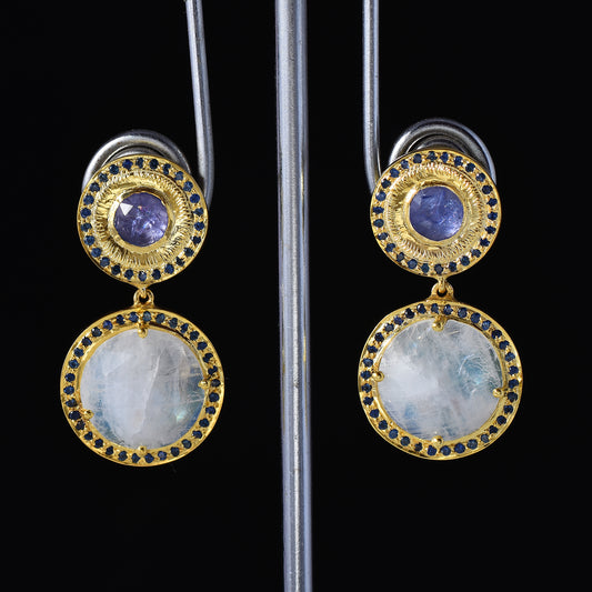 Blue Sapphire Floral Studs