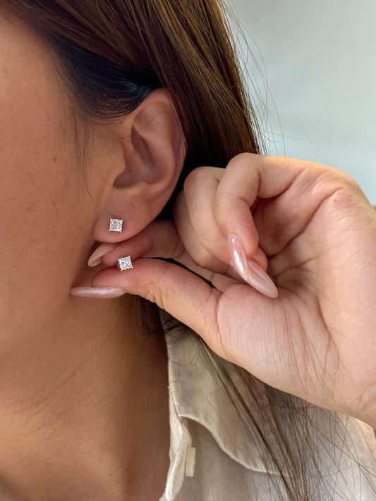 9K Princess Cut Lab Diamond Earrings