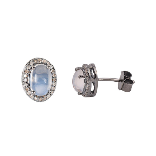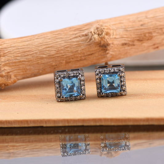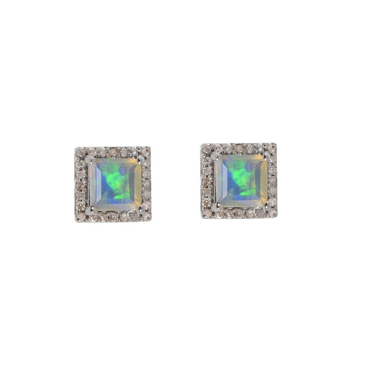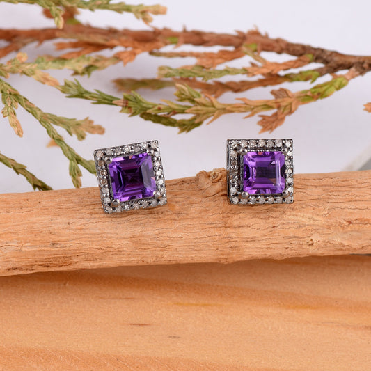 Dainty Amethyst & Diamond Halo Studs Earrings