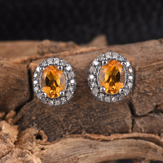Sunshine Citrine Diamonds Halo Studs Earrings