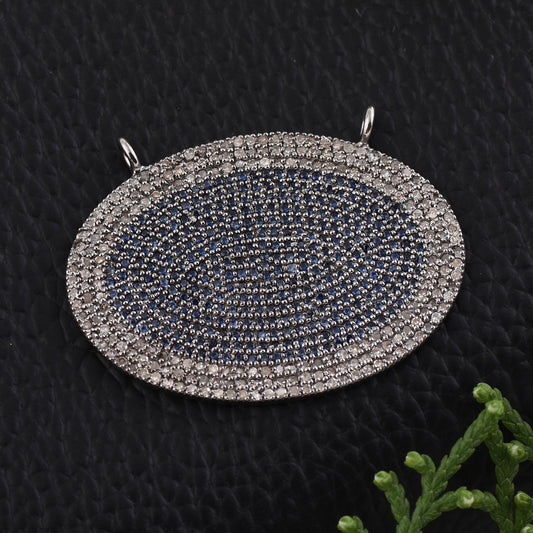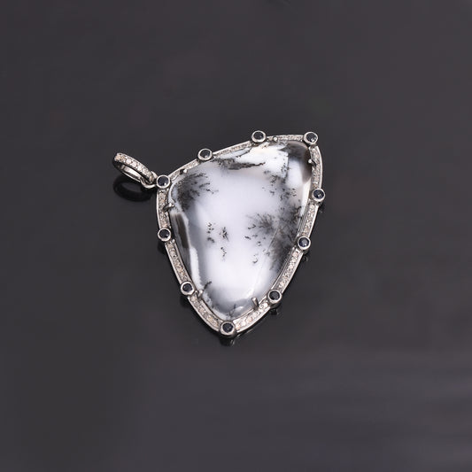Beautiful Dendritic Opal Pendant Clustered with Diamonds and Blue Sapphire