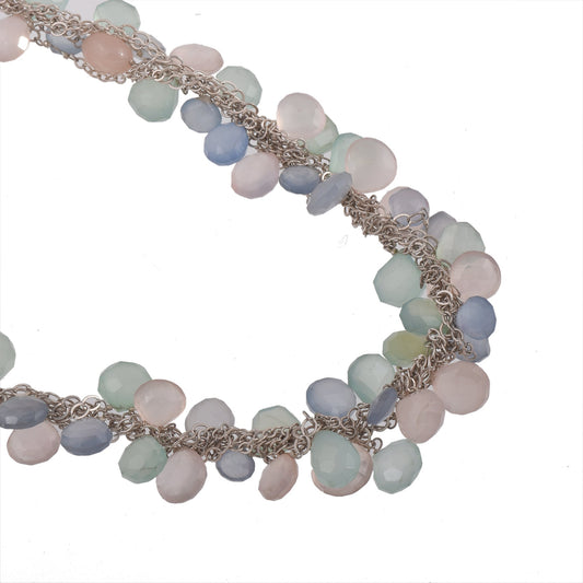 Rose Quartz and Blue Chalcedony Raindrop Layering Necklace