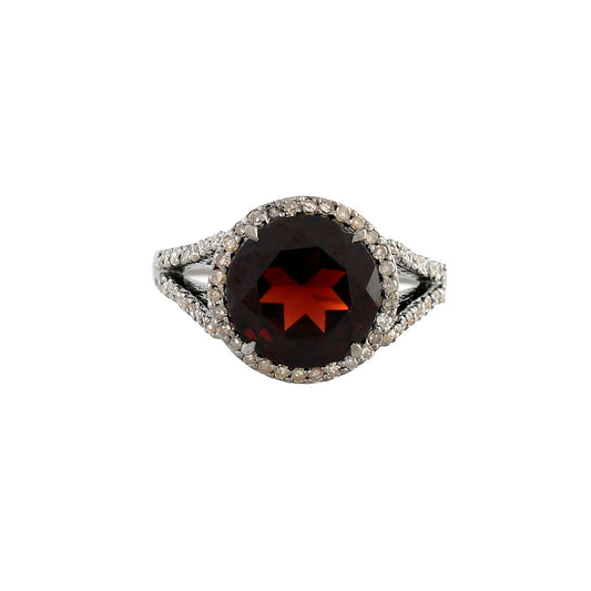 Diamond Halo Garnet Engagement Ring