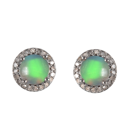 Green Blush Opal Halo Diamond Earrings