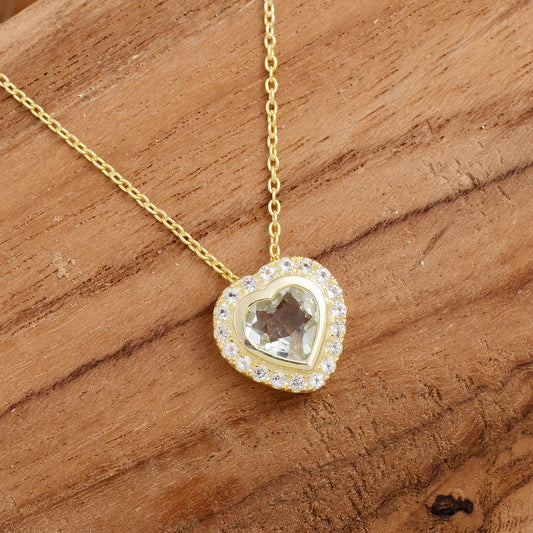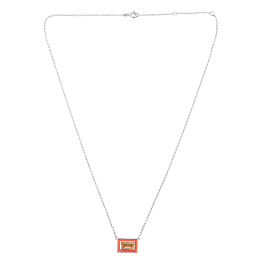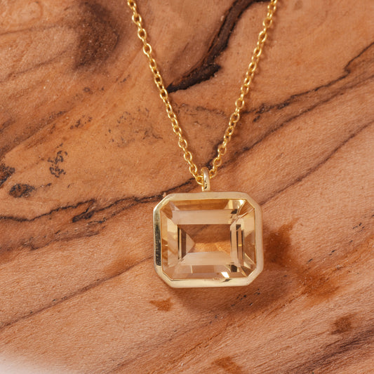 Yellow Citrine Gemstone Halo Necklace 925 Silver