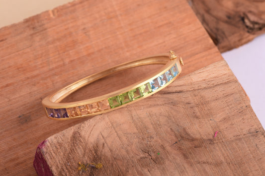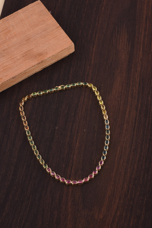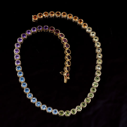Rainbow Gemstone Tennis Necklace 925 Silver